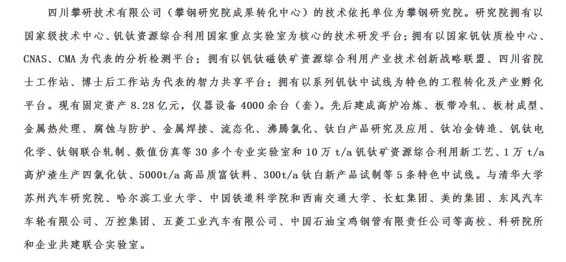 四川攀研技術有限公司(攀鋼研究院成果轉化中心)的技術依托單位為攀鋼研究院。研究院擁有以*********技術中心、釩鈦資源綜合利用國家重...